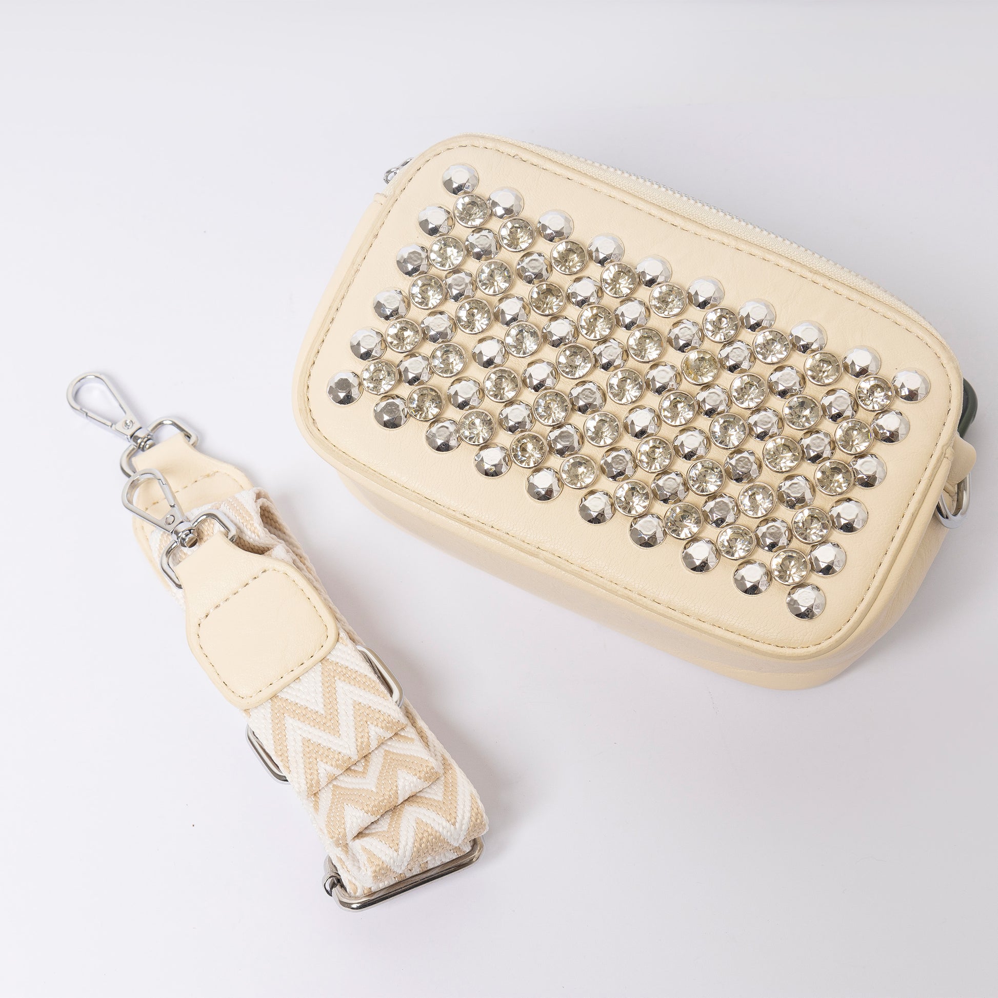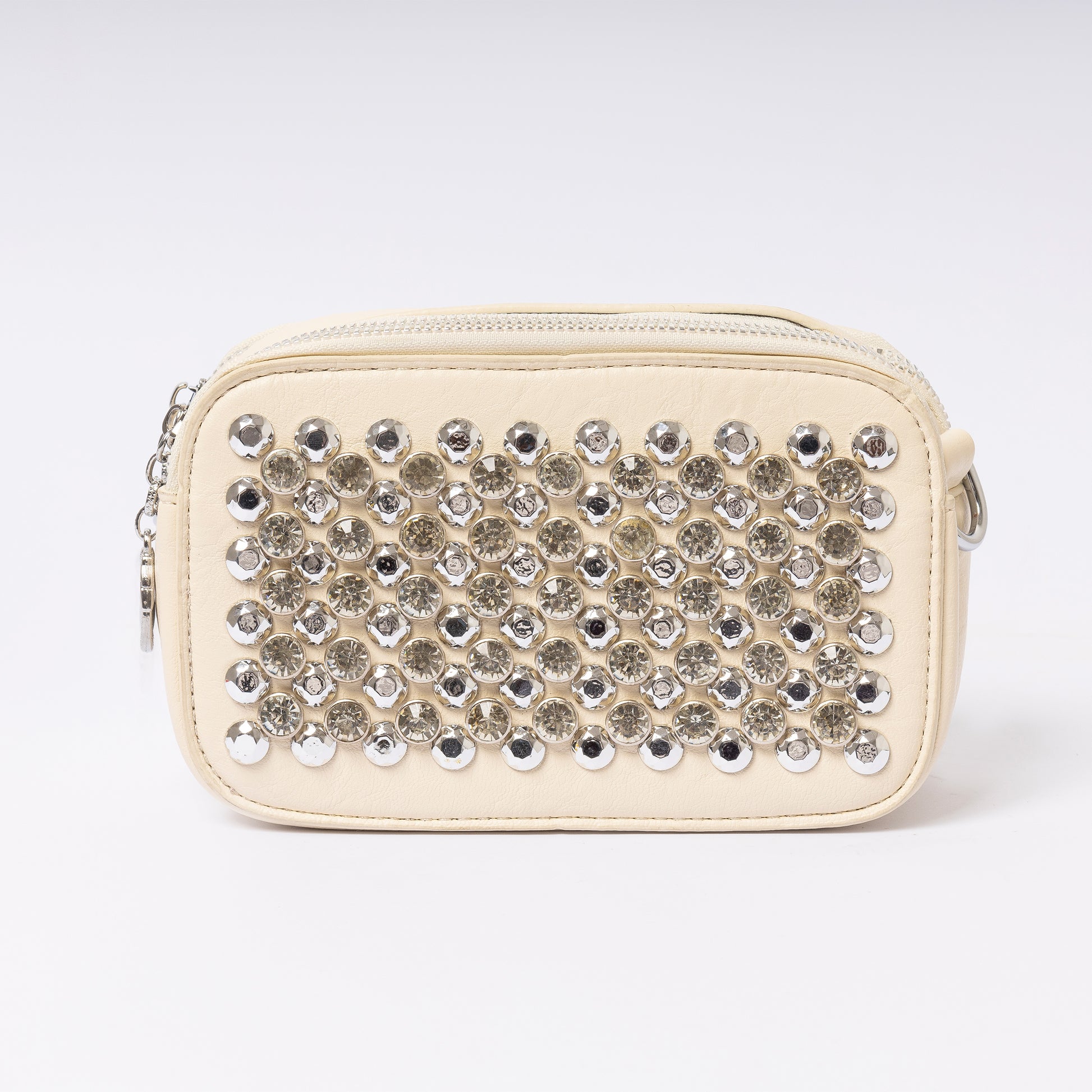 The Auróra Crystal Cross body Bag redefines modern glamour. Adorned with hand-set crystals that glimmer with every movement, this piece is curated to elevate your evenings and add quiet luxury to your everyday looks.