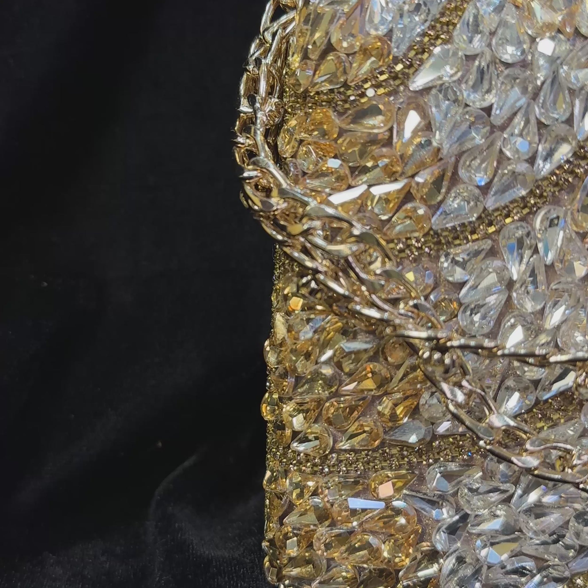 This crystal-embellished clutch captures the essence of modern luxury sleek, structured and effortlessly radiant. Its shimmering surface dances with light, while the crystal-studded clasp and metallic chain strap add a hint of elevated sophistication. Designed to complement both couture and contemporary ensembles, Elára Luxe transitions seamlessly from evening soirées to wedding receptions and red-carpet moments. Elára Luxeis your timeless statement of refined glamour.